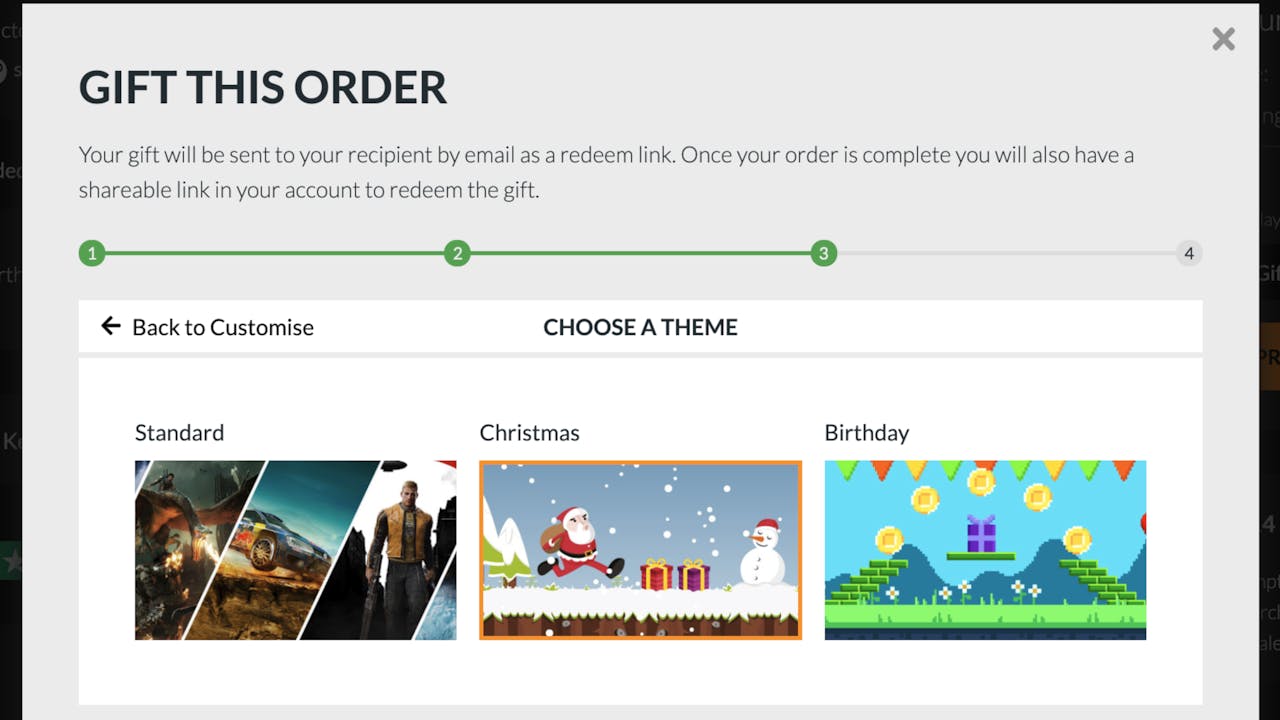 If you wanted to send a festive game or eBook gift to your friend or family member, you can choose a Christmas theme and personalized message to spread some cheer. There's also a Birthday theme available in case you want to give a gift after the Holidays - or maybe their big day lands around this time of year, and you want to make it more personal.