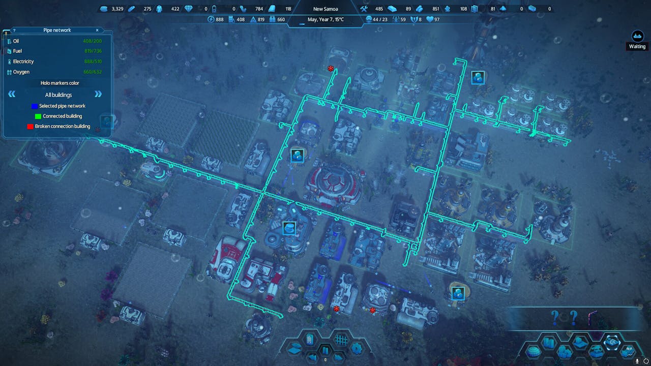 Despite the extremophile environment ala Frostpunk, it seems that Aquatico seems to have more in common with something like Surviving Mars; your end goal is building a sustainable, long-term civilisation under Earth’s oceans and labouring through the intense challenges that it brings. The building system seems to encourage large interconnected webs of pipes and slowly, but, surely building Aquaman’s metropolis of dreams, rather than a simple settlement to hold out in.